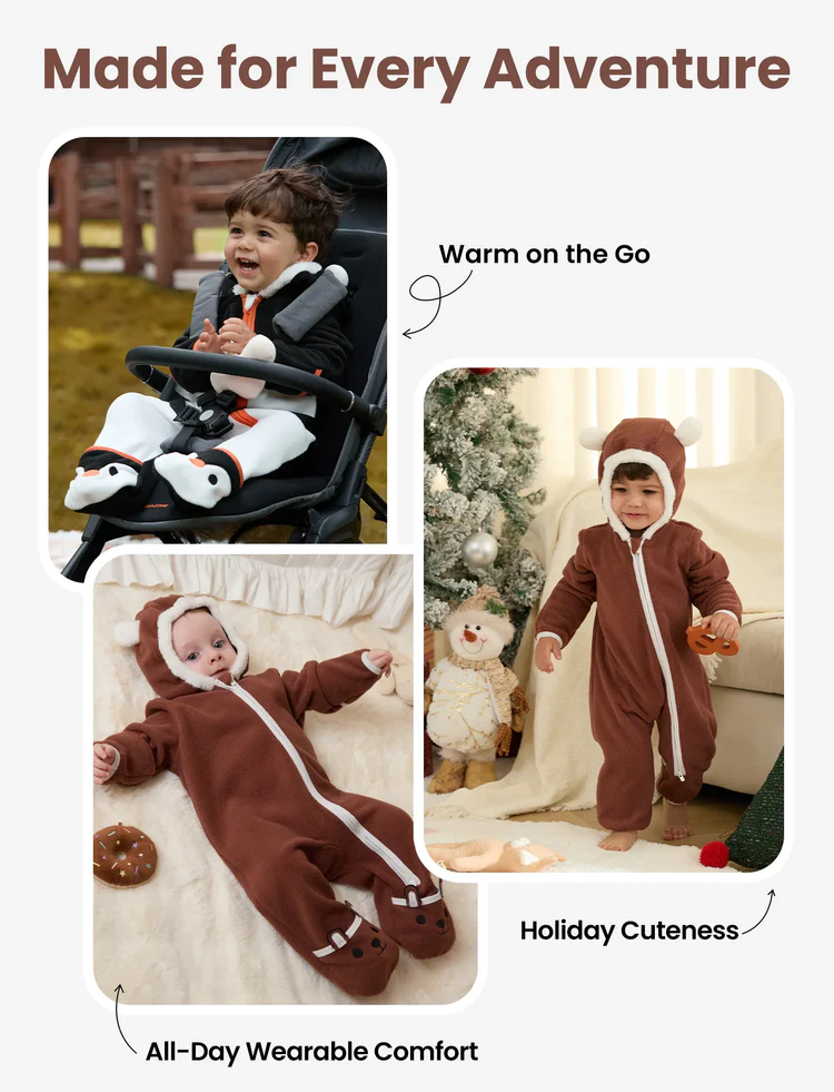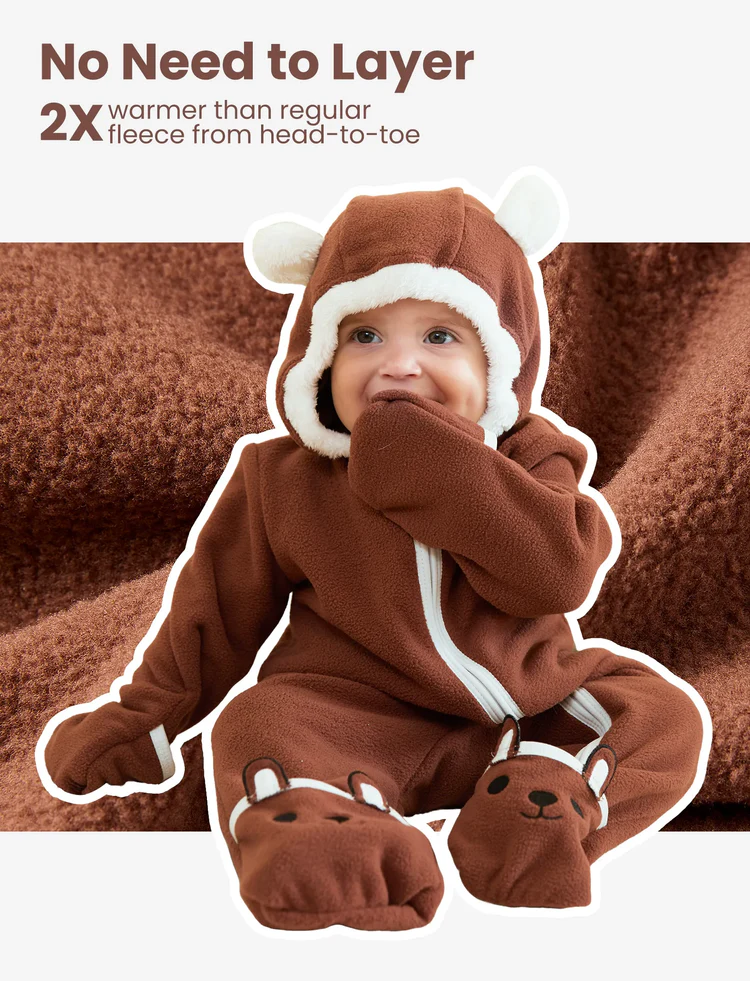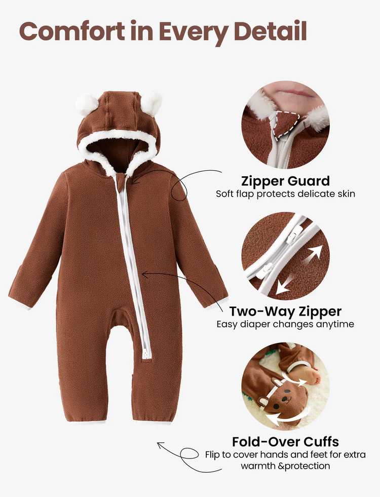 - Mangas: Mangas largas para mantener al bebé abrigado.